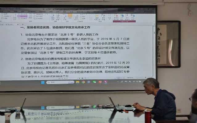 首先,由分会会长邱红专代表上一届分会做工作报告。他说,本分会在学院离退休党支部领导下,按照“三位一体(学院离退休4个党支部及管理小组、学院关工委、学院分会)”工作模式,根据党的十九大和二十大精神,重点围绕“老有所养,老有所依,老有所为,老有所乐”开展了各项工作。报告从“发扬老同志优势,协助做好学院文化传承工作”、“积极参加离退休党委/工作处、关工委与校“三老”协会组织的各项活动”、“威廉希尔williamhill官网分会开展的各项活动”、“积极参与、协助威廉希尔williamhill官网的其他相关工作”、“经验、不足和今后工作的思考”等5个方面进行了系统总结。大家一致认为,分会按照“三位一体”工作模式,坚持“有所为有所不为”的原则,尽管遇到了“疫情”的困难,仍然配合学院、校关工委与校“三老”协会开展了丰富多彩的活动,为立德树人、人才培养、党建、传承学院文化等做出了力所能及的贡献。大家以热烈的掌声通过了这个工作报告。