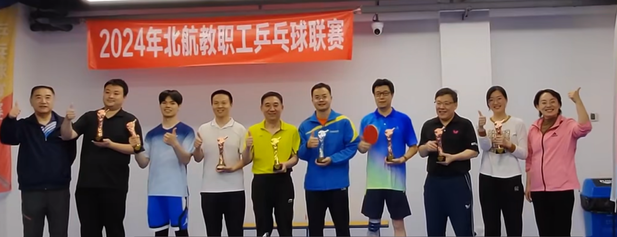 2024年北航教职工乒乓球联赛于4月20日落下帷幕。这次比赛在学院王少萍书记的大力支持和关怀下,在院工会李清东主席及其郑建英、杨凌宇等工会委员们的精心组织下,参赛运动员团结协作,顽强拼搏,最终取得了佳绩。我院代表队在本次联赛团体赛中,连续击败另两个小组第一,挺进决赛,并最终获得了团体亚军。个人赛中吴静老师冲入四强,张可欣、佟子昂进入八强。可喜可贺。