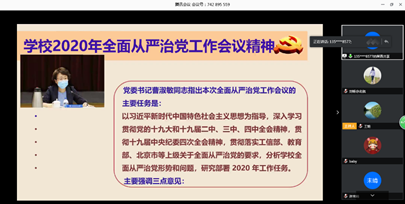 6月3日下午,威廉希尔williamhill官网召开了学习学校2020年全面从严治党工作会议精神全院大会,同时分党委书记王少萍做了“党风廉政建设永远在路上”的专题党课,会议通过视频会议方式召开,学院全体教职工和学生党支部书记参加了本次会议。