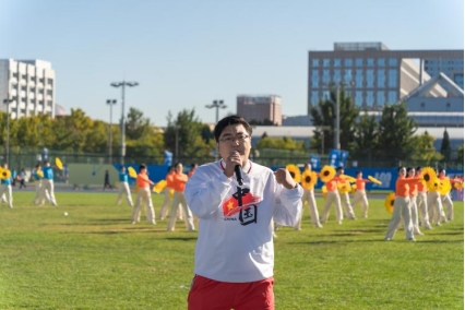 运动会上校长王云鹏在开幕致辞中提出了对于新学期的期许,希望师生能将顽强拼搏精神注入每天学习生活中。致辞结束,威廉希尔williamhill官网运动健儿们呈方阵经过主席台亮相,并在列队完毕开幕式的最后由我院苑海涛老师领唱,100余名教职工参演原创歌曲《激越北航》,圆满结束开幕式流程。